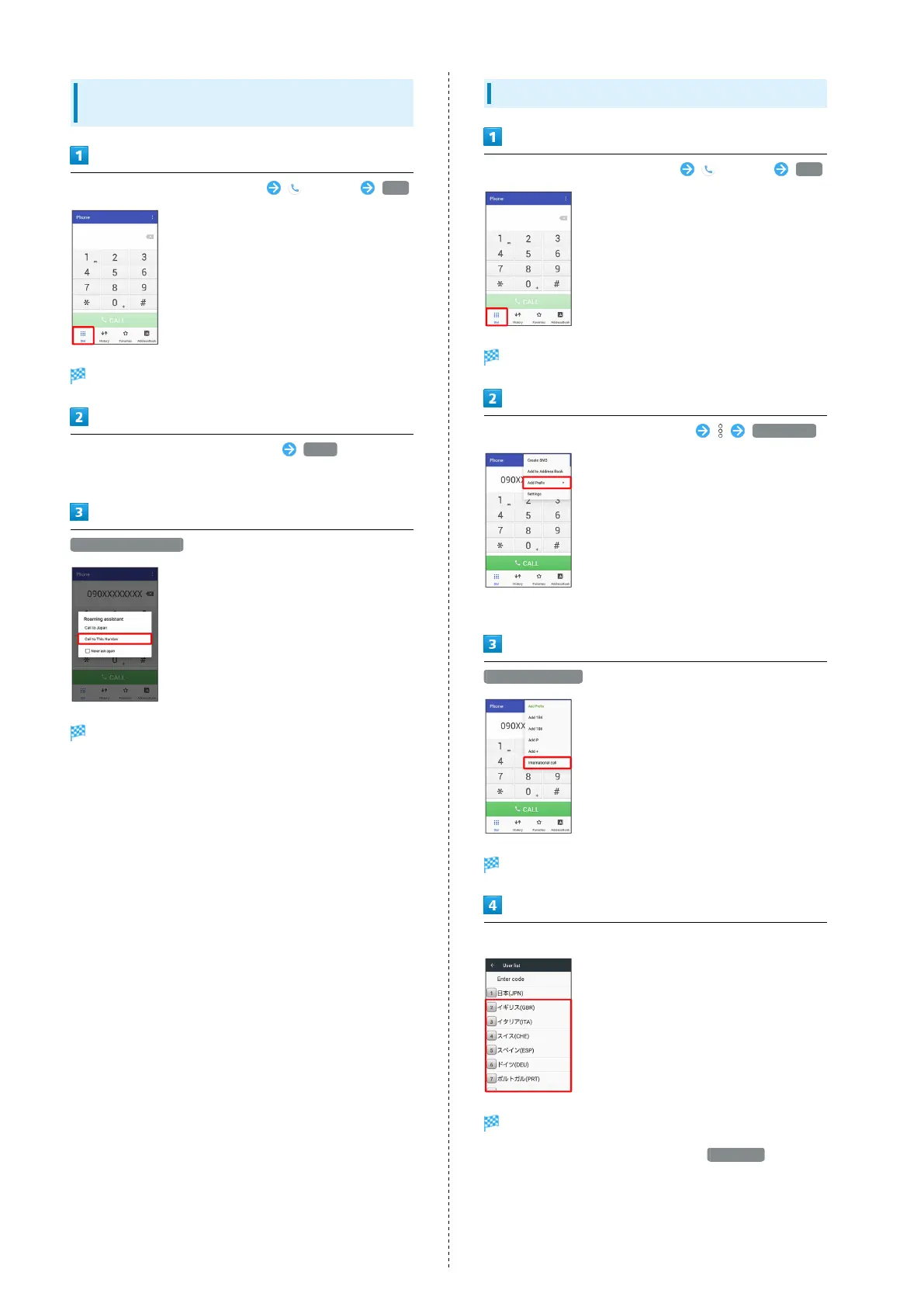 When calling a SoftBank handset, Tap 日本(JPN)
