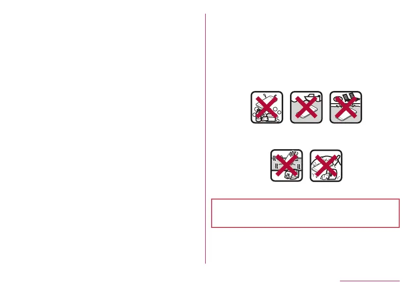 food, dirt or soil adheres to the handset, rinse it off immediately.