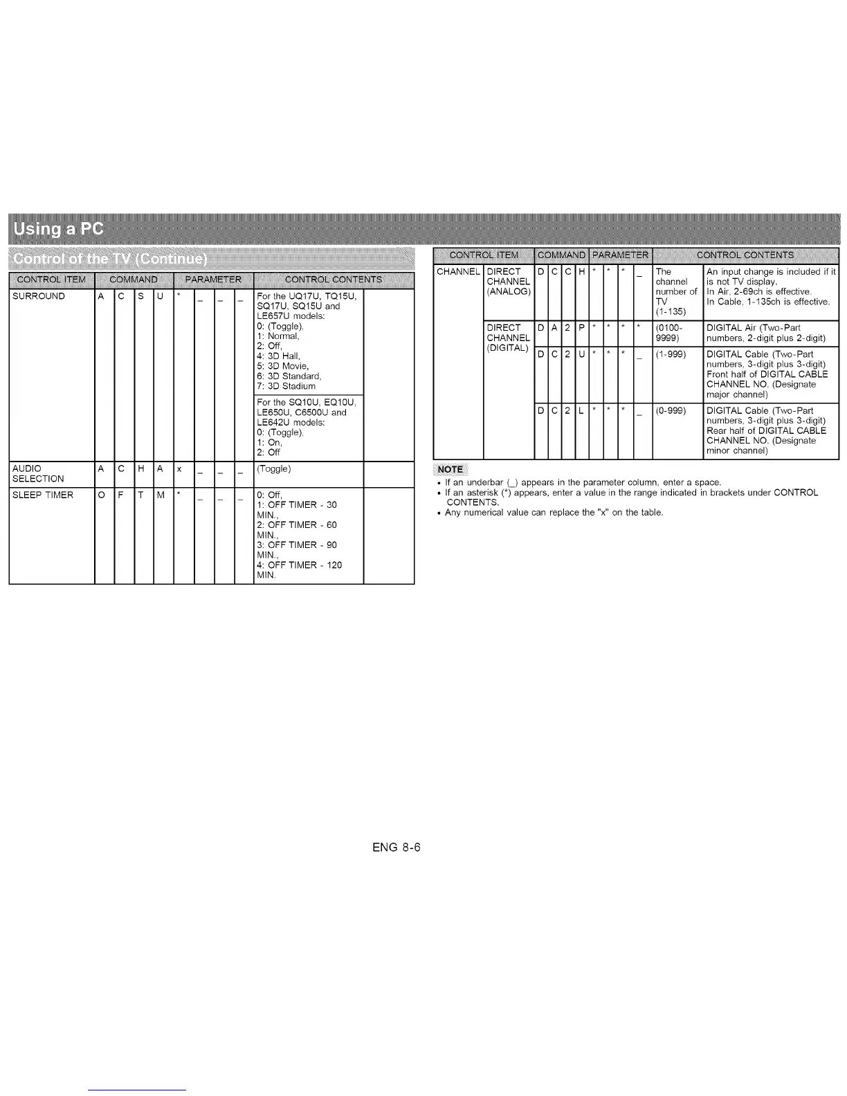 • If an underbar (_) appears in the parameter column, enter a space.