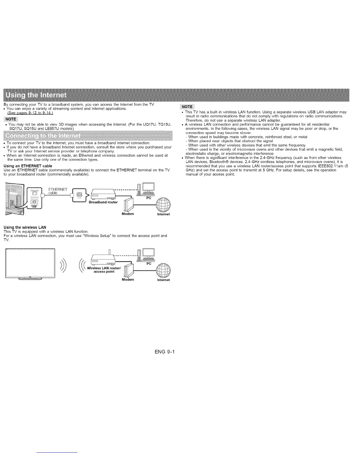• This TV has a built-in wireless LAN function. Using a separate wireless USB LAN adapter may