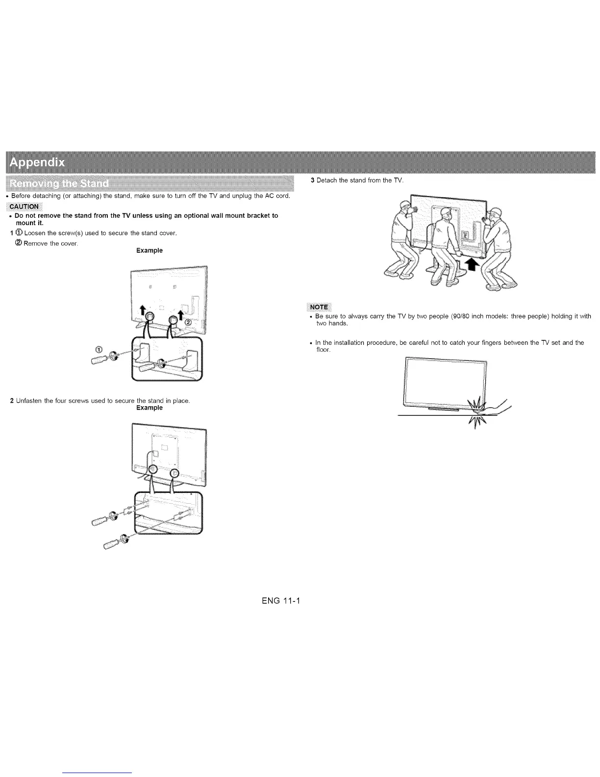 • Before detaching (or attaching) the stand, make sure to turn off the TV and unplug the AC cord.