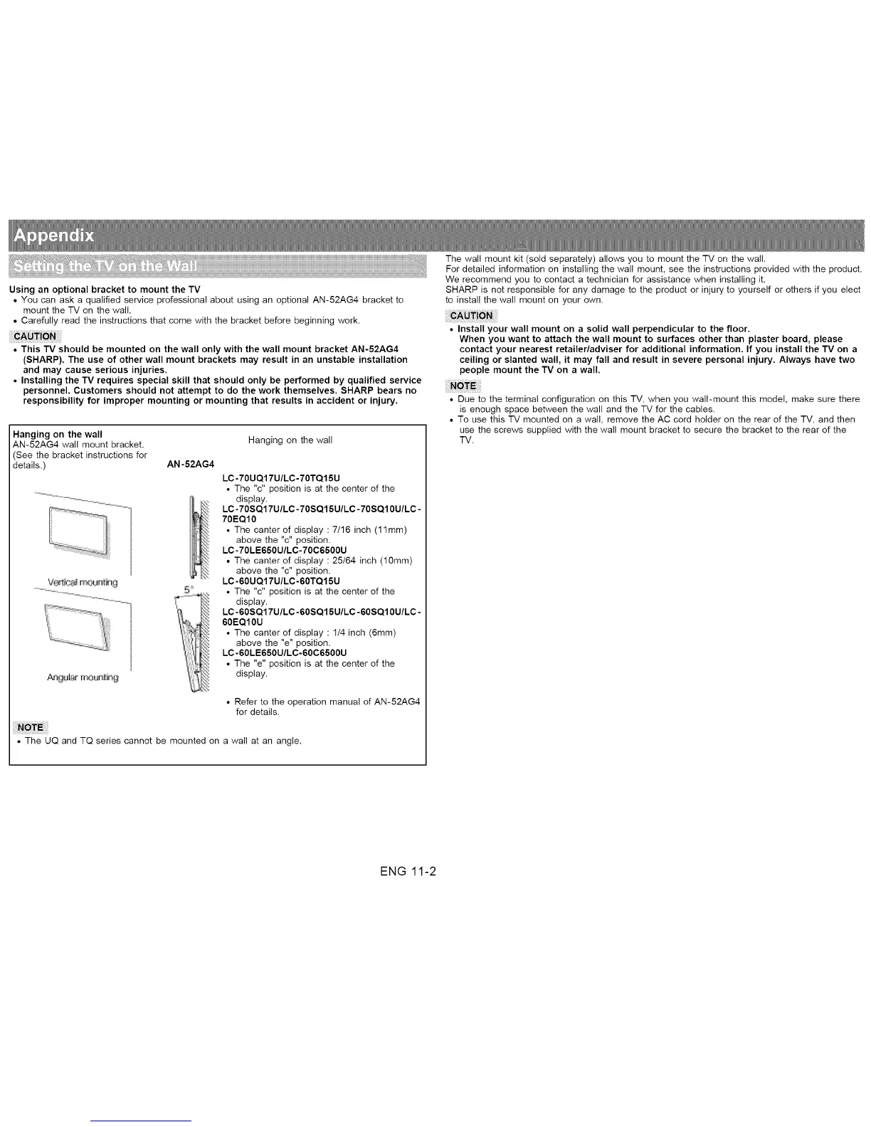 • You can ask a qualified service professional about using an optional AN-52AG4 bracket to