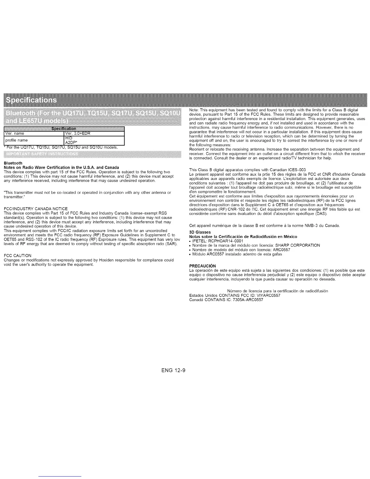 • Nombre de la marca del m6dulo con licencia: SHARP CORPORATION