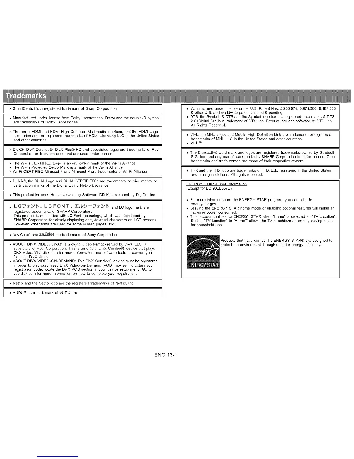 • SmartCentral is a registered trademark of Sharp Corporation.