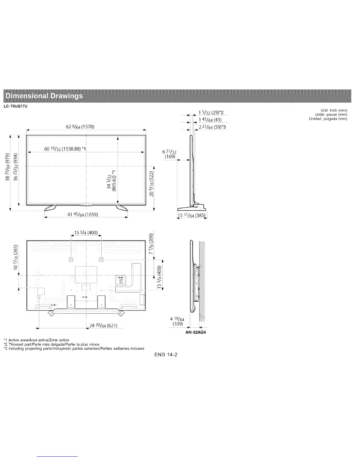 *3 Including projecting parts/Incluyendo pares salientes/Parties saiNantes incluses