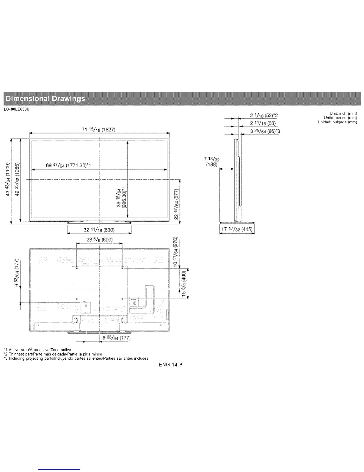 *3 Including projecting parts/Incluyendo pares salientes/Parties saillantes incluses