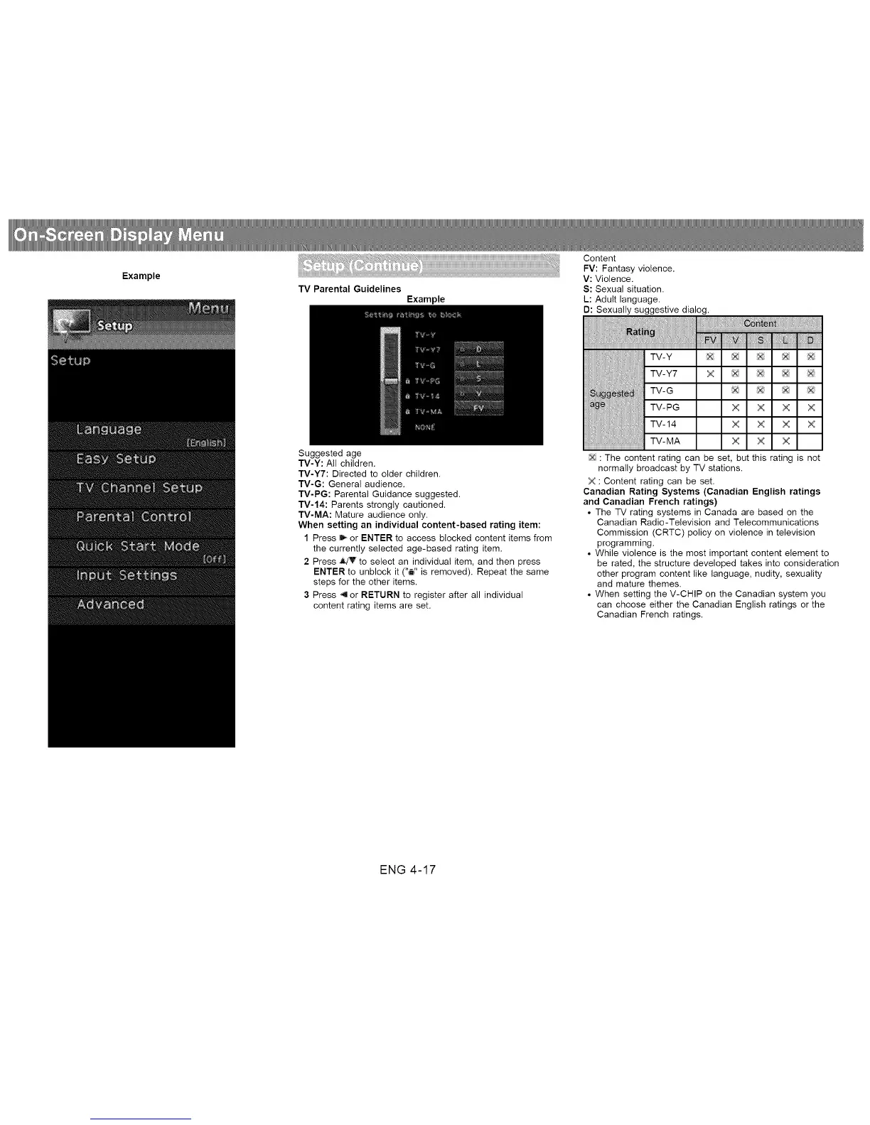 • When setting the V-CHIP on the Canadian system you