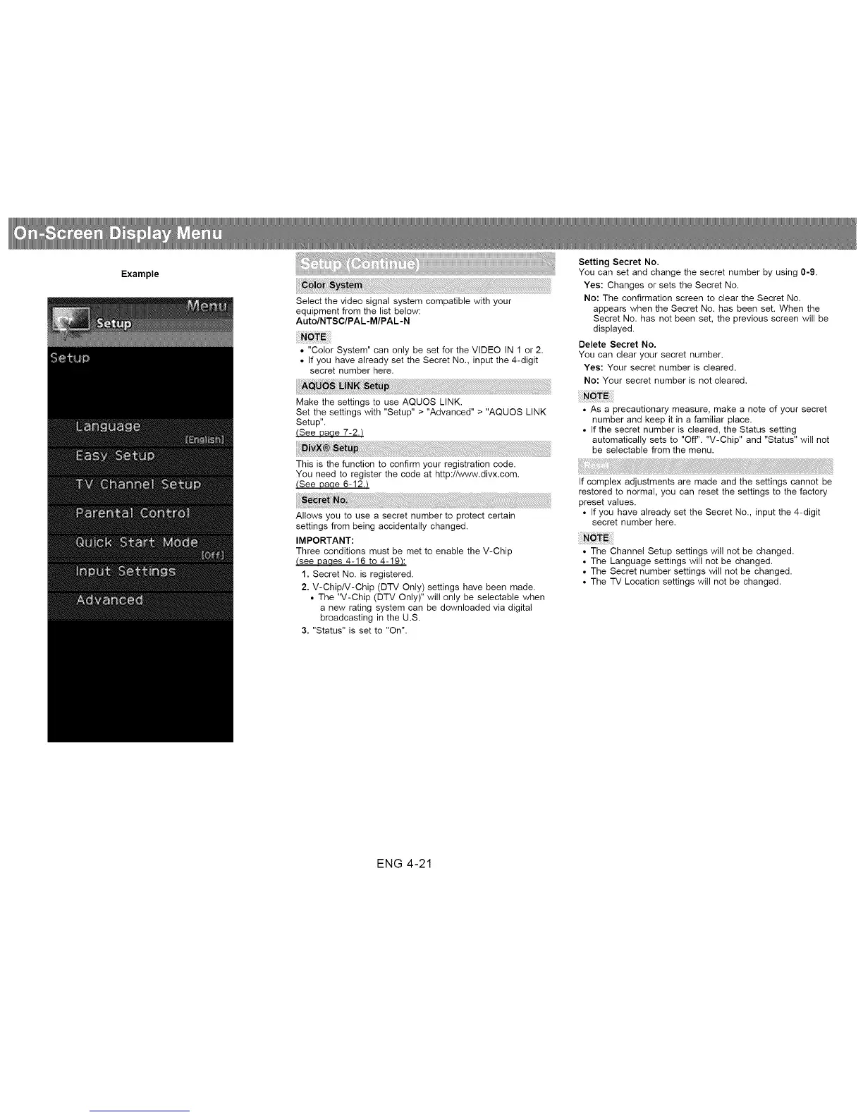 automatically sets to "Off". "V-Chip" and "Status" will not