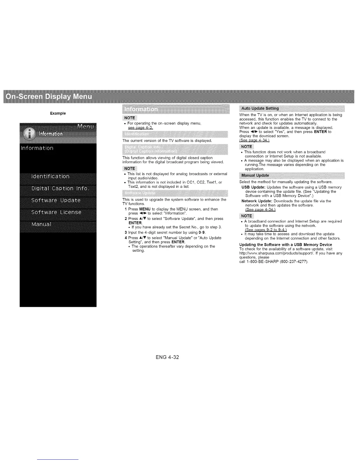 USB Update: Updates the software using a USB memory