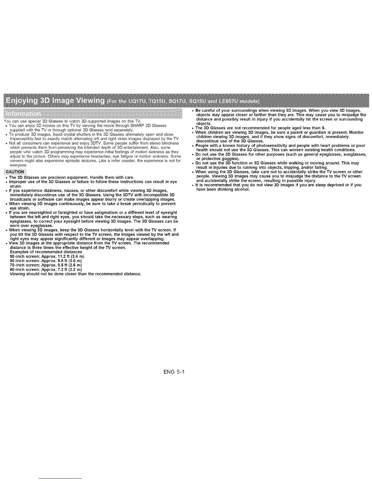 immediately discontinue use of the 3D Glasses. Using the 3DTV with incompatible 3D