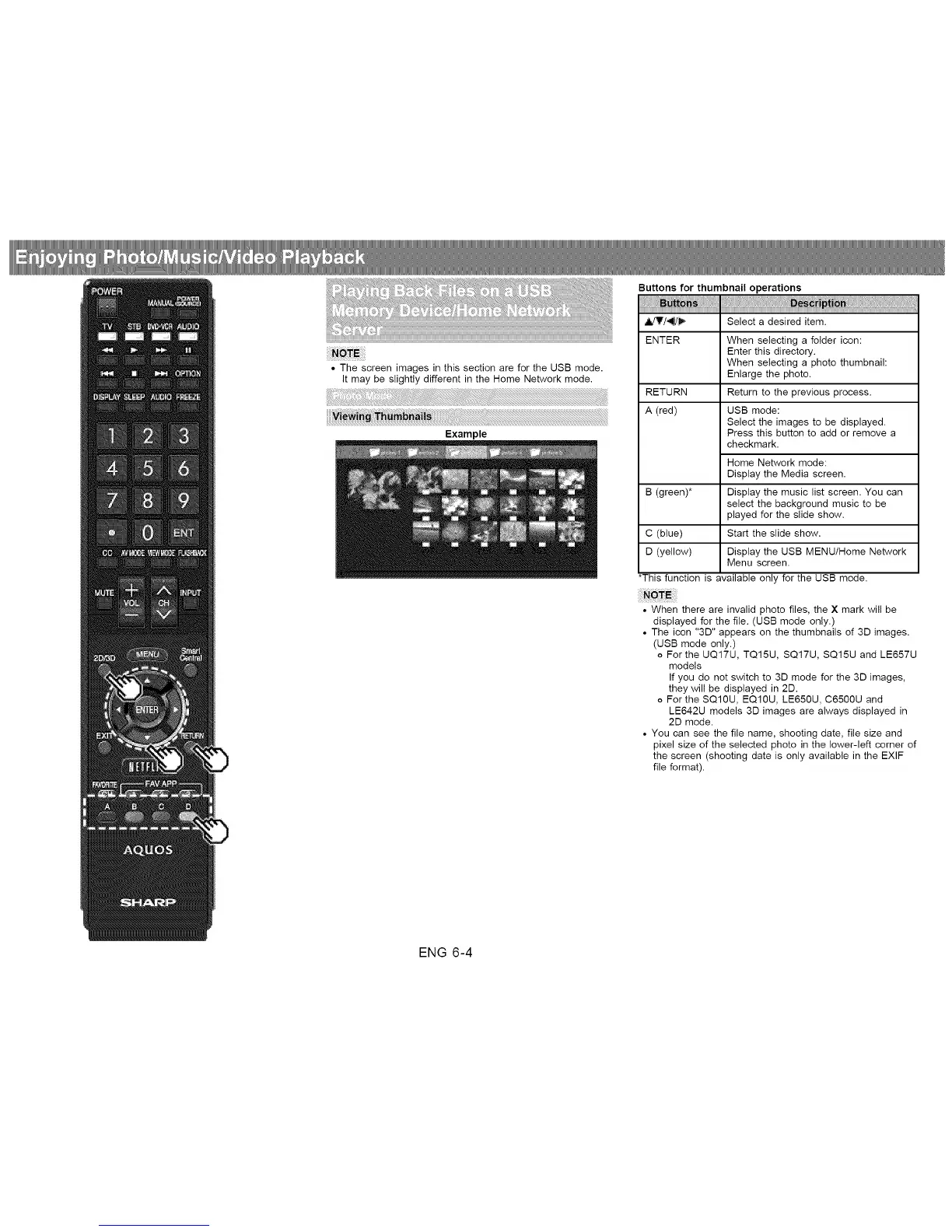 D (yellow) Display the USB MENUIHome Network