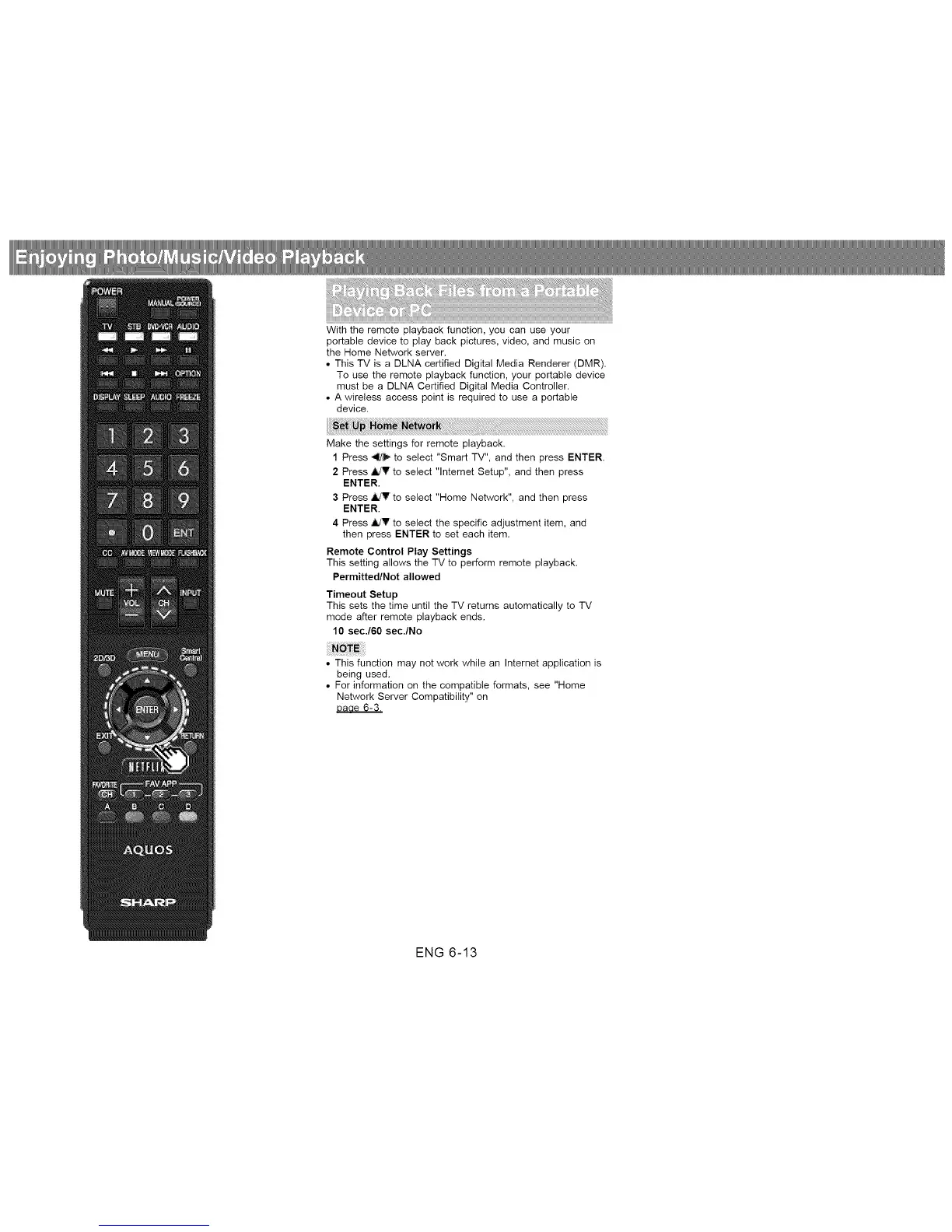 • This TV is a DLNA certified Digital Media Renderer (DMR).
