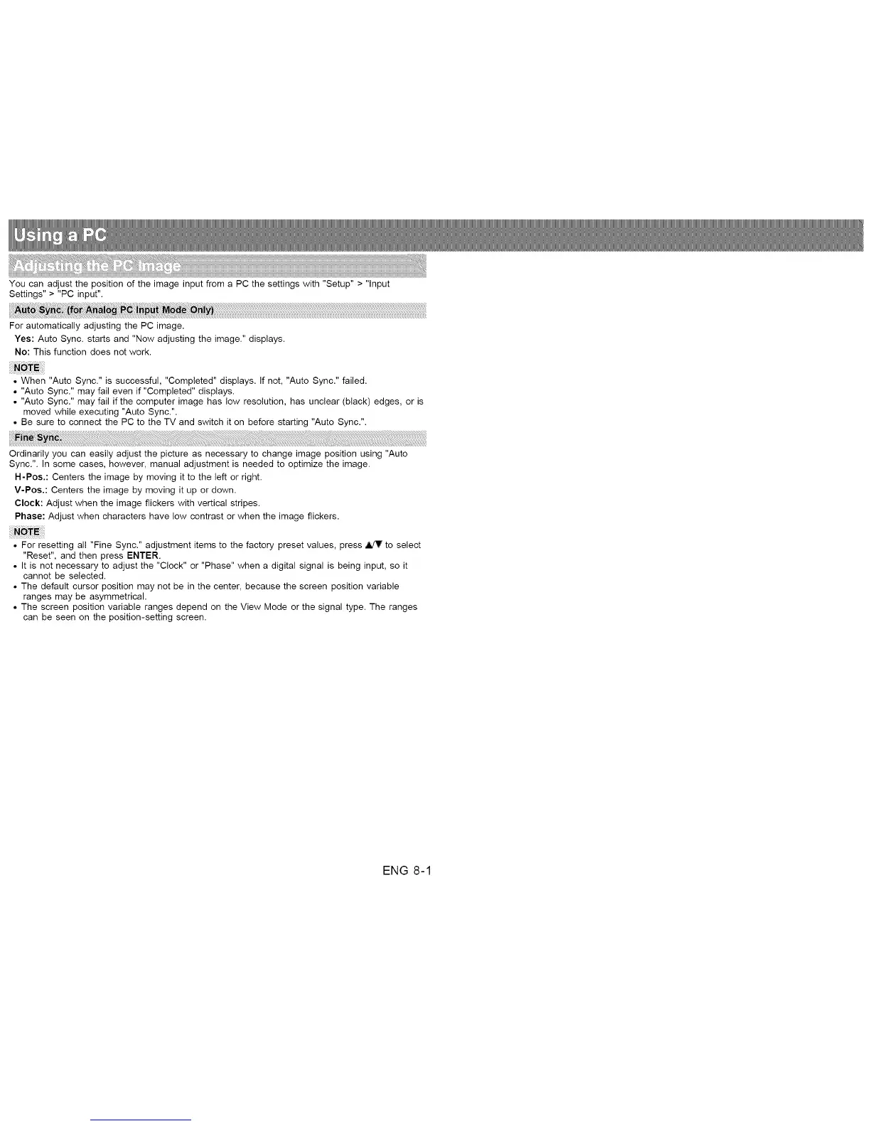 Sync.". In some cases, however, manual adjustment is needed to optimize the image.