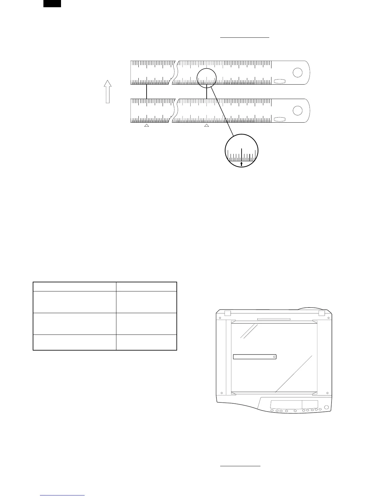 4) Measure the length of the copied scale image. 5) Calculate the main scanning direction magnification ratio.
