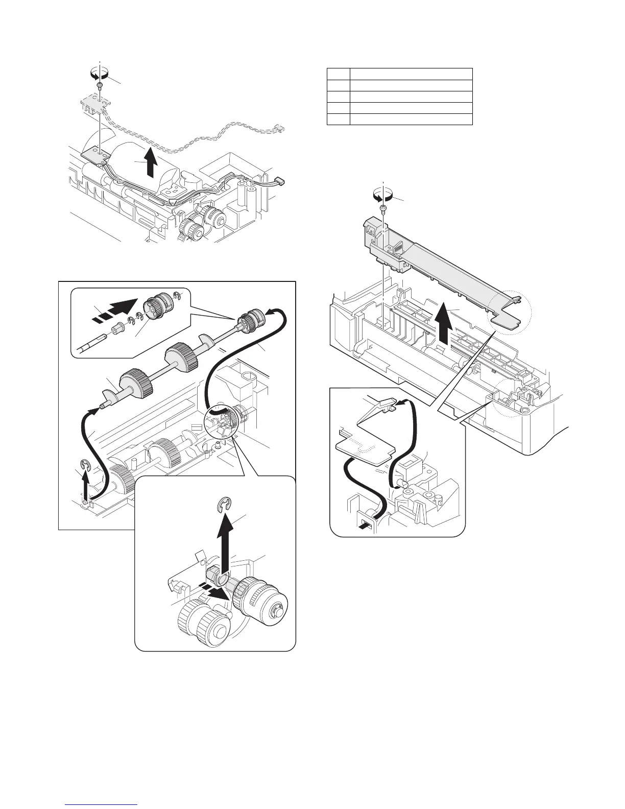 38) Remove two E-rings and remove the paper feed roller.