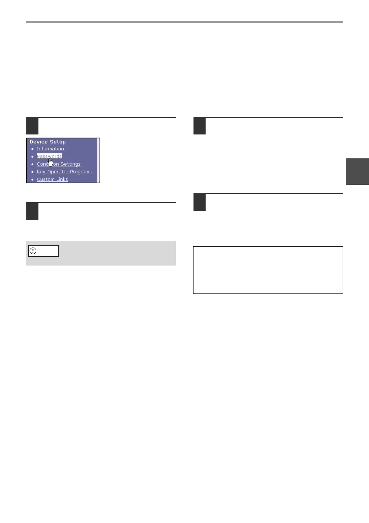 The settings and information programmed in the Web page can be protected by establishing passwords (click