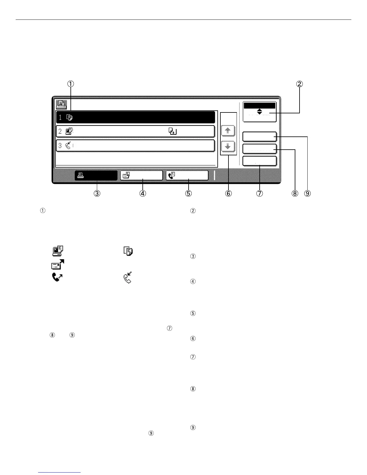 This screen is displayed when the [JOB STATUS] key on the operation panel is pressed.