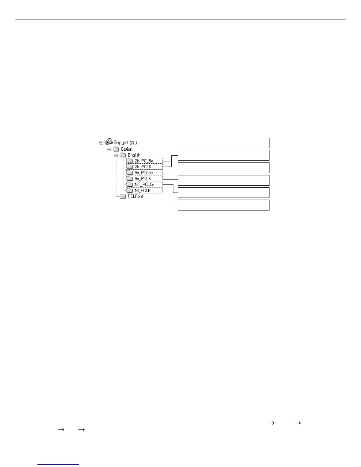 When using Plug and Play or using the “Add Printer Wizard” to install printer drivers, enter the directory name