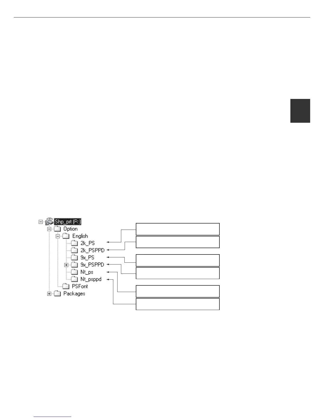 To install the PostScript printer driver using the “Add Printer” wizard in place of using the installer, enter the directory