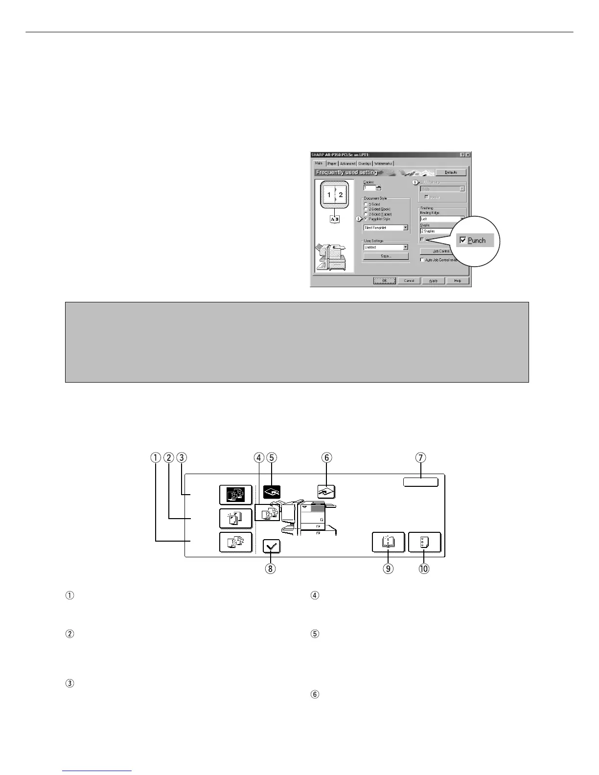 ● The settings screens above will appear only if the devices have been set properly in the printer driver configuration