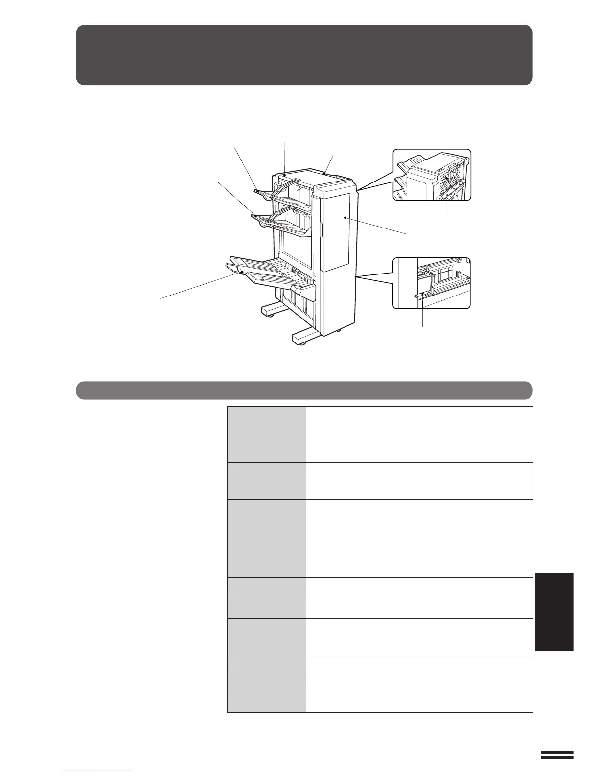 The top tray and second tray are each furnished with an extendable component, which is to be used when copying