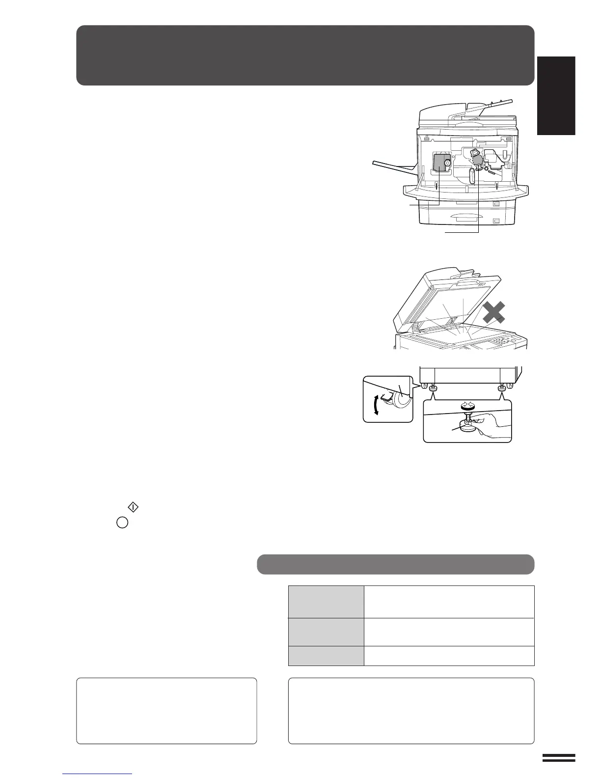 care not to subject the copier to any vibration or shock.