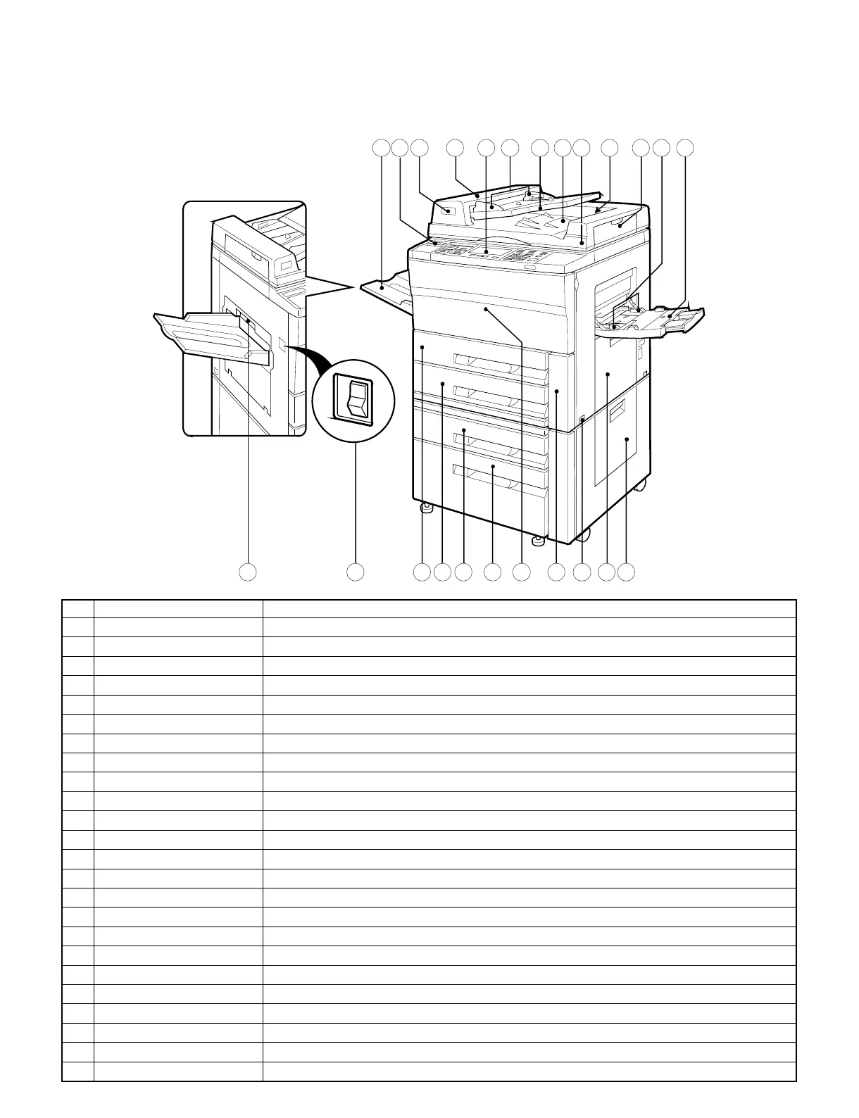 Paper tray 1 Holds 500 sheets of 20 lb. bond paper. Copy paper size can be changed by changing the inner cassette.