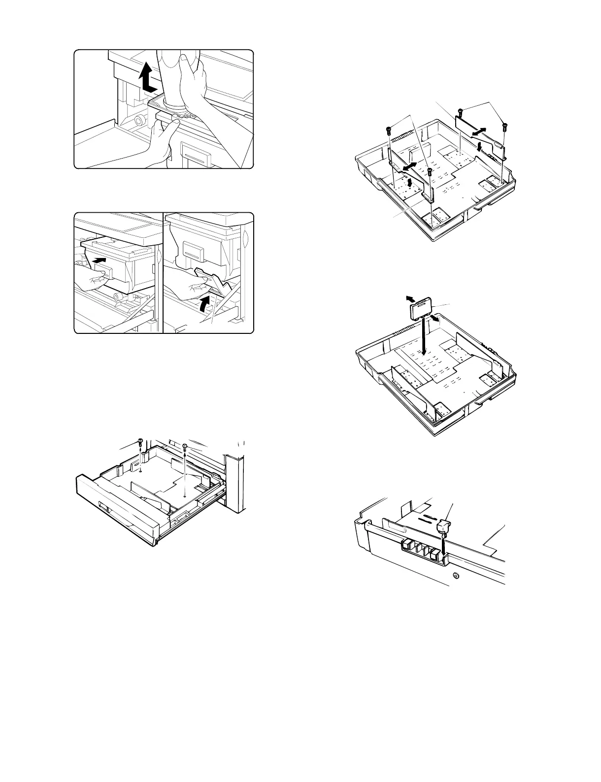 h. Move the empty toner cartridge in the arrow direction to remove.