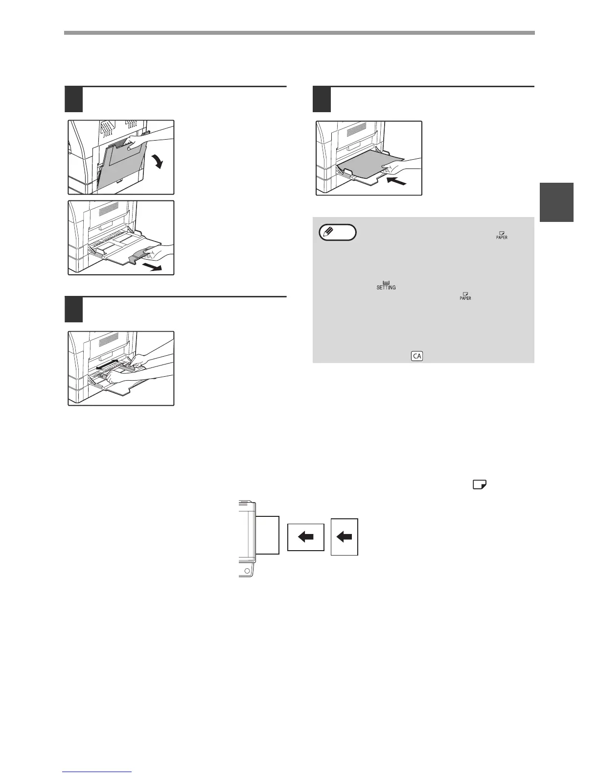 Special papers except SHARP recommended transparency film, labels, and envelopes must be fed one sheet at a