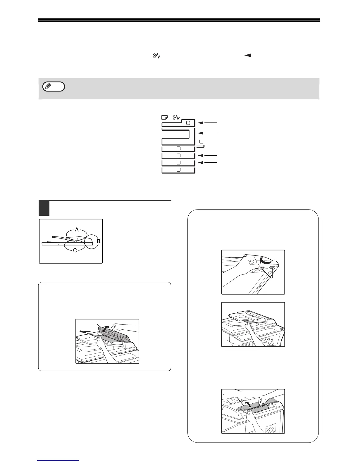 When a misfeed occurs, the misfeed indicator ( ) and a misfeed location indicator ( ) will blink and the machine