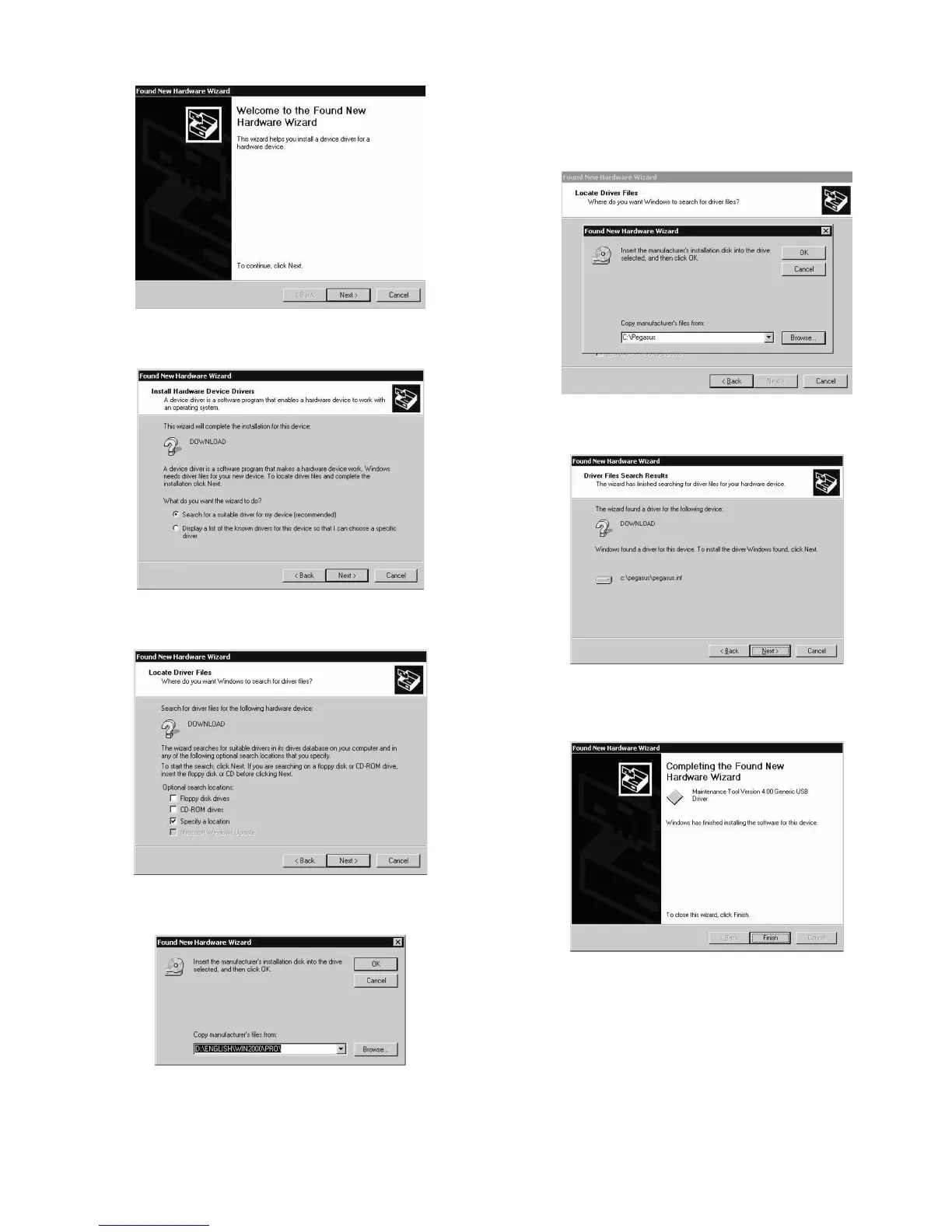 tool driver (Pegasus.inf) is properly displayed, and press the OK