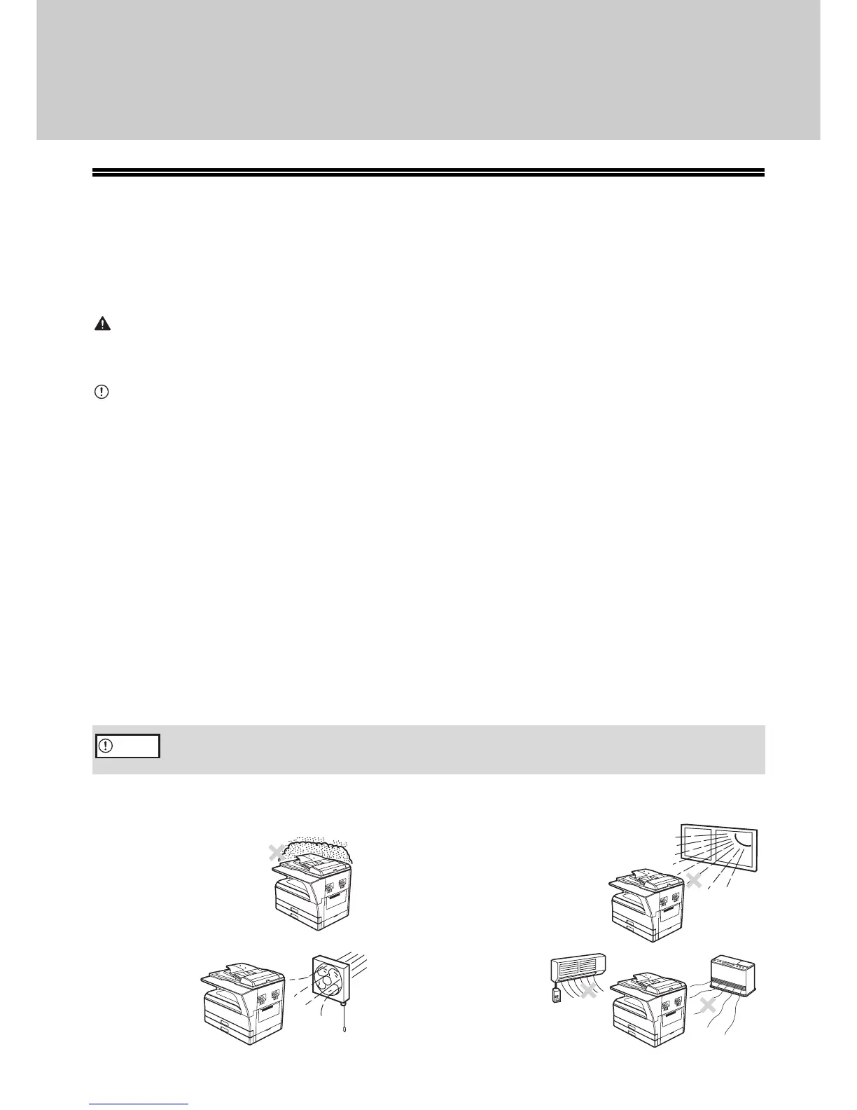 • Do not cover the machine with a dust cover, cloth or plastic film while the power is on. Doing so may prevent heat