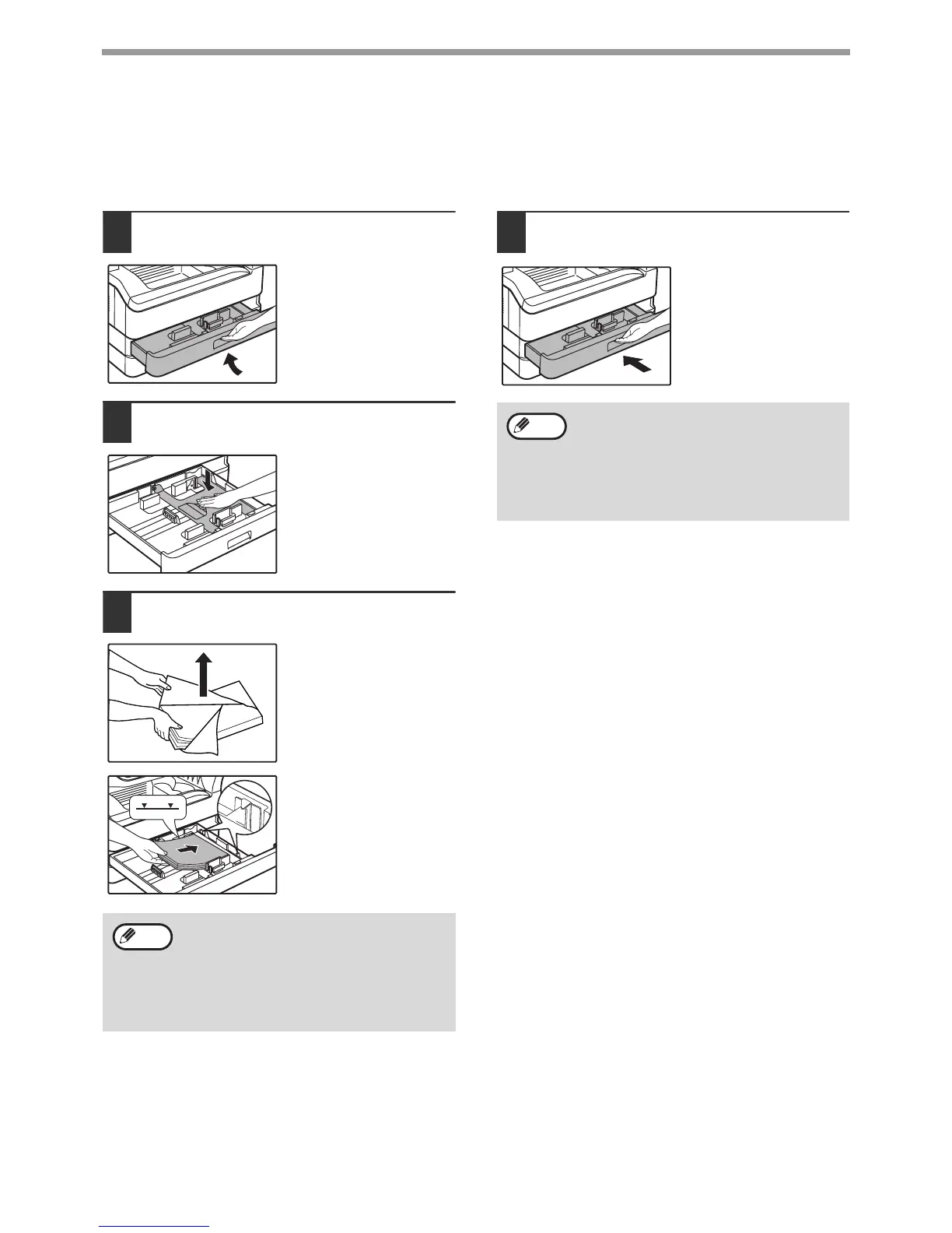 Make sure that the machine is not copying or printing, and then follow these steps to load paper.