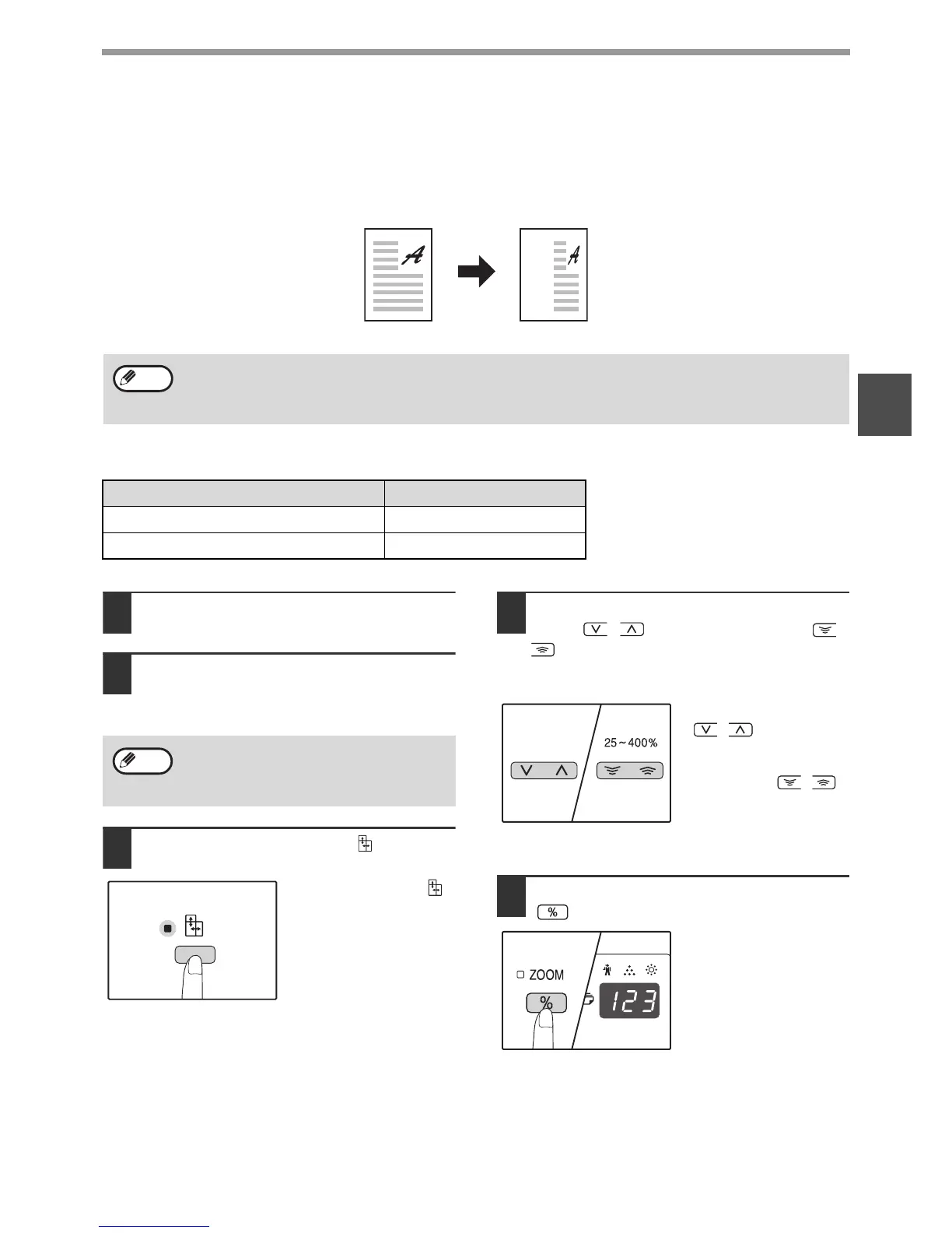 The XY ZOOM feature allows the horizontal and vertical copy ratios to be changed independently.