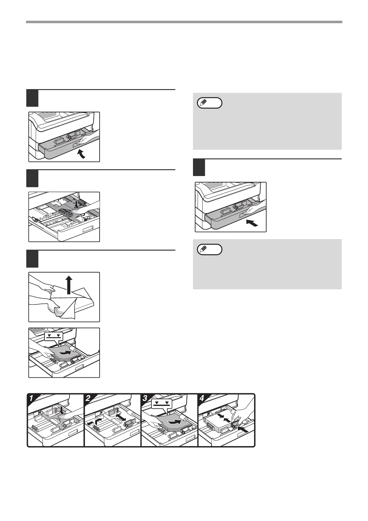 Make sure that the machine is not copying or printing, and then follow these steps to load paper.