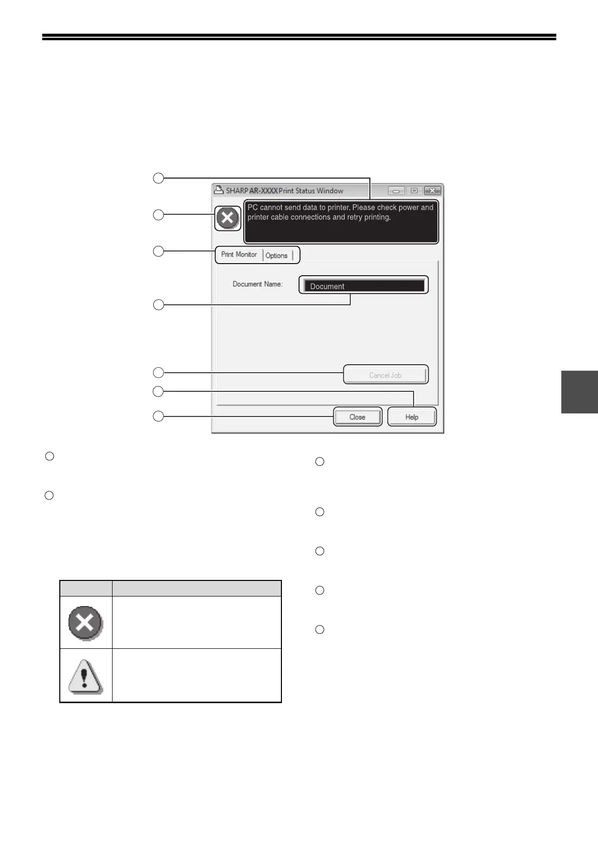 The Print Status Window is a utility that monitors the machine and shows the name of the document being printed