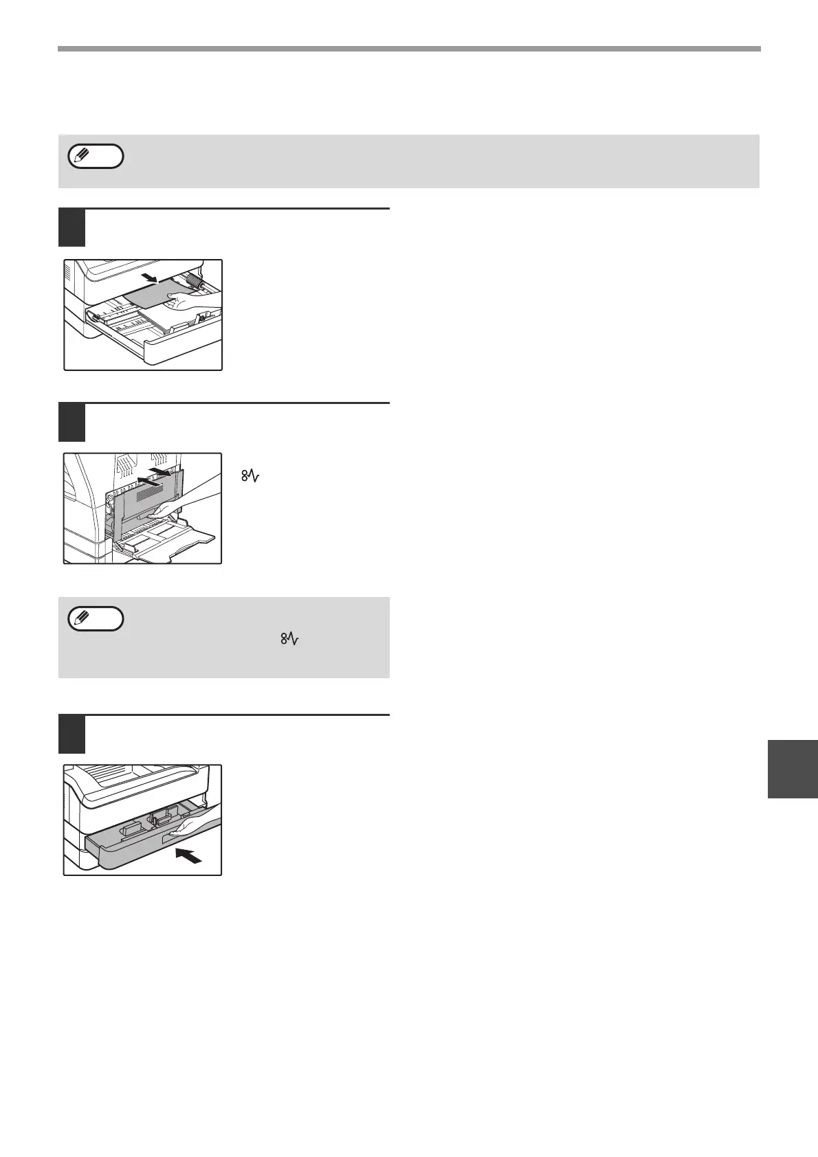 Make sure that there is no misfed paper in the tray before pulling it out. (p.90)