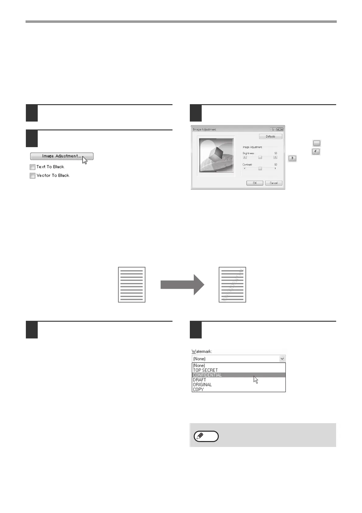 Faint shadow-like text can be added to the background of the printed image as a watermark. The size, density, and