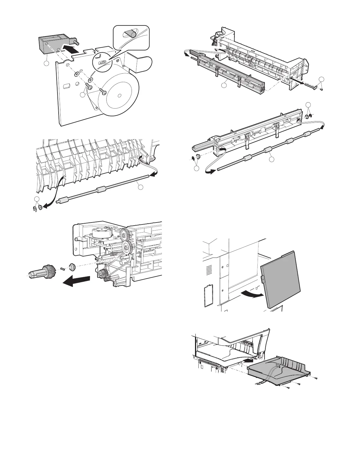 2) Remove the left cabinet and exit tray.
