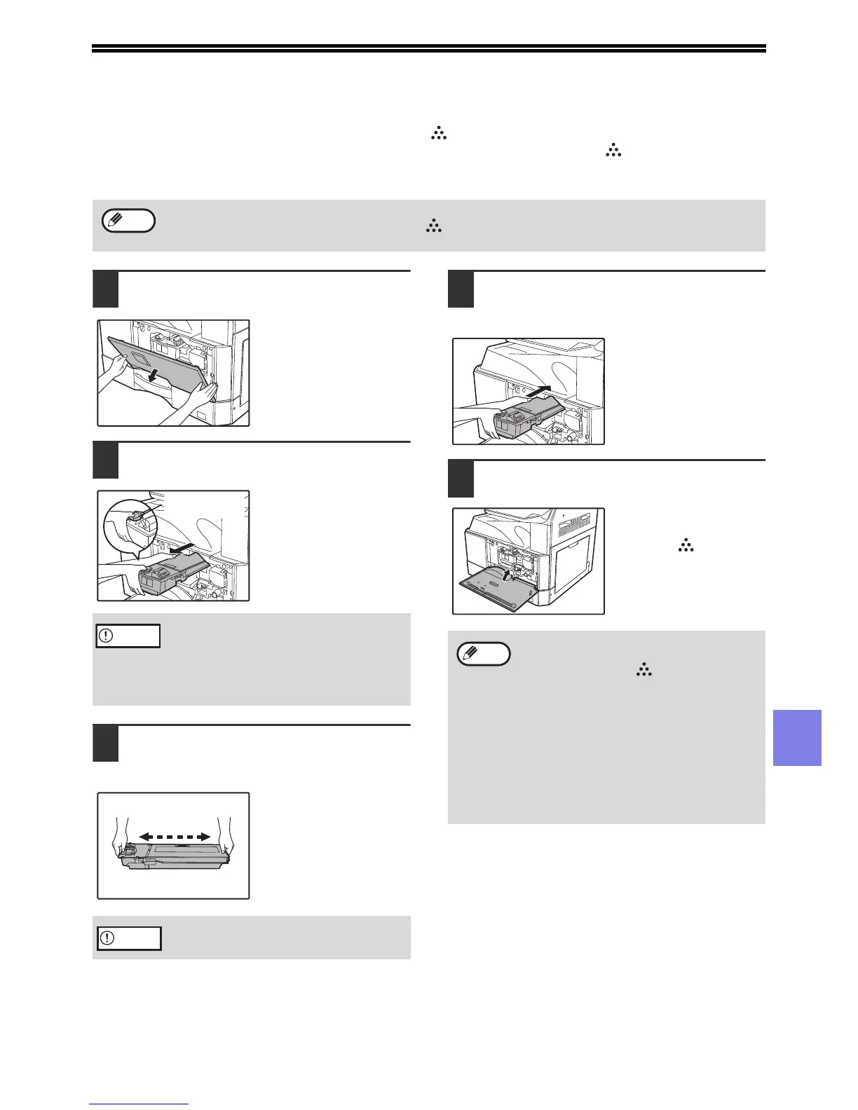 soon. Obtain a new cartridge. When the toner cartridge replacement required indicator ( ) blinks, the toner