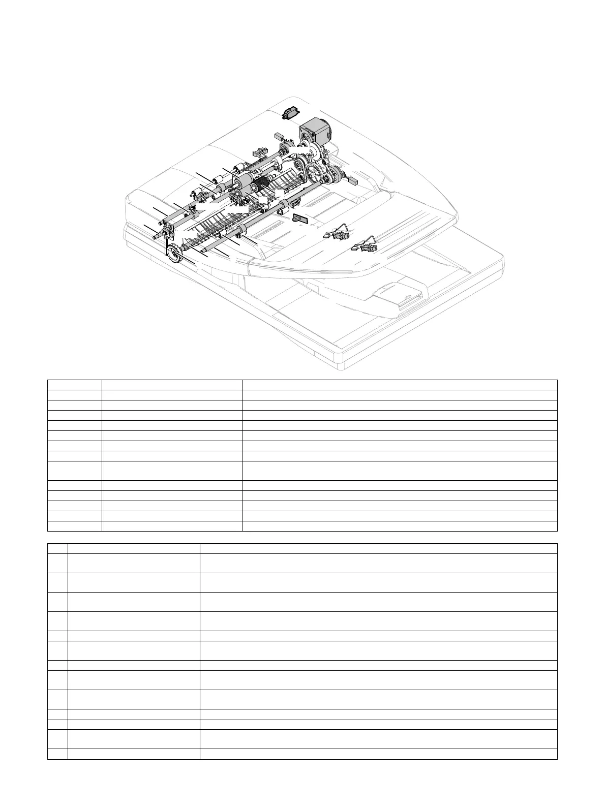 12 Paper feed roller Feeds a document to the transport section. Makes a warp on paper between the registration roller and this roller