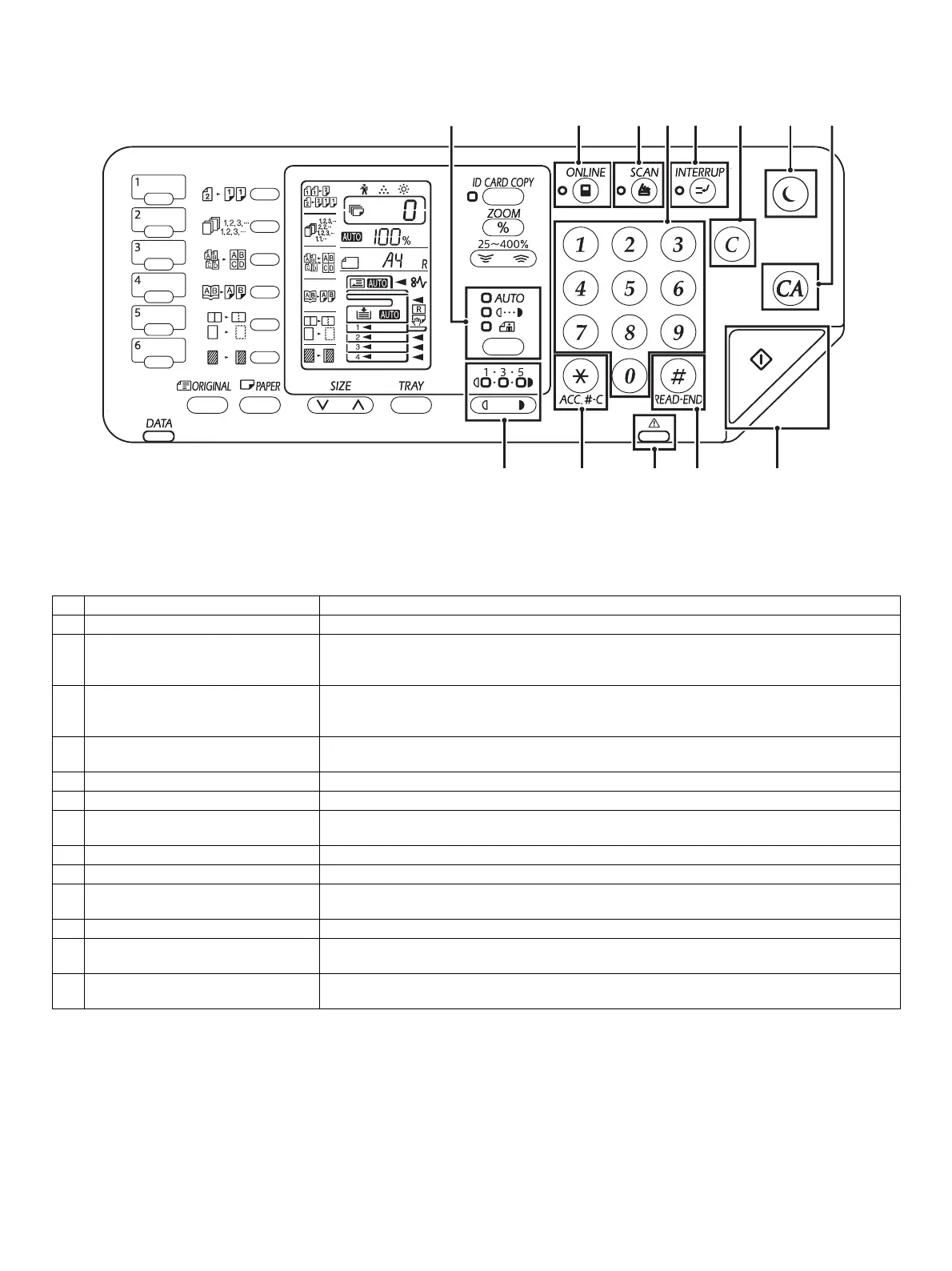 6 CLEAR key Clears the copy quantity display or terminates a copy run.