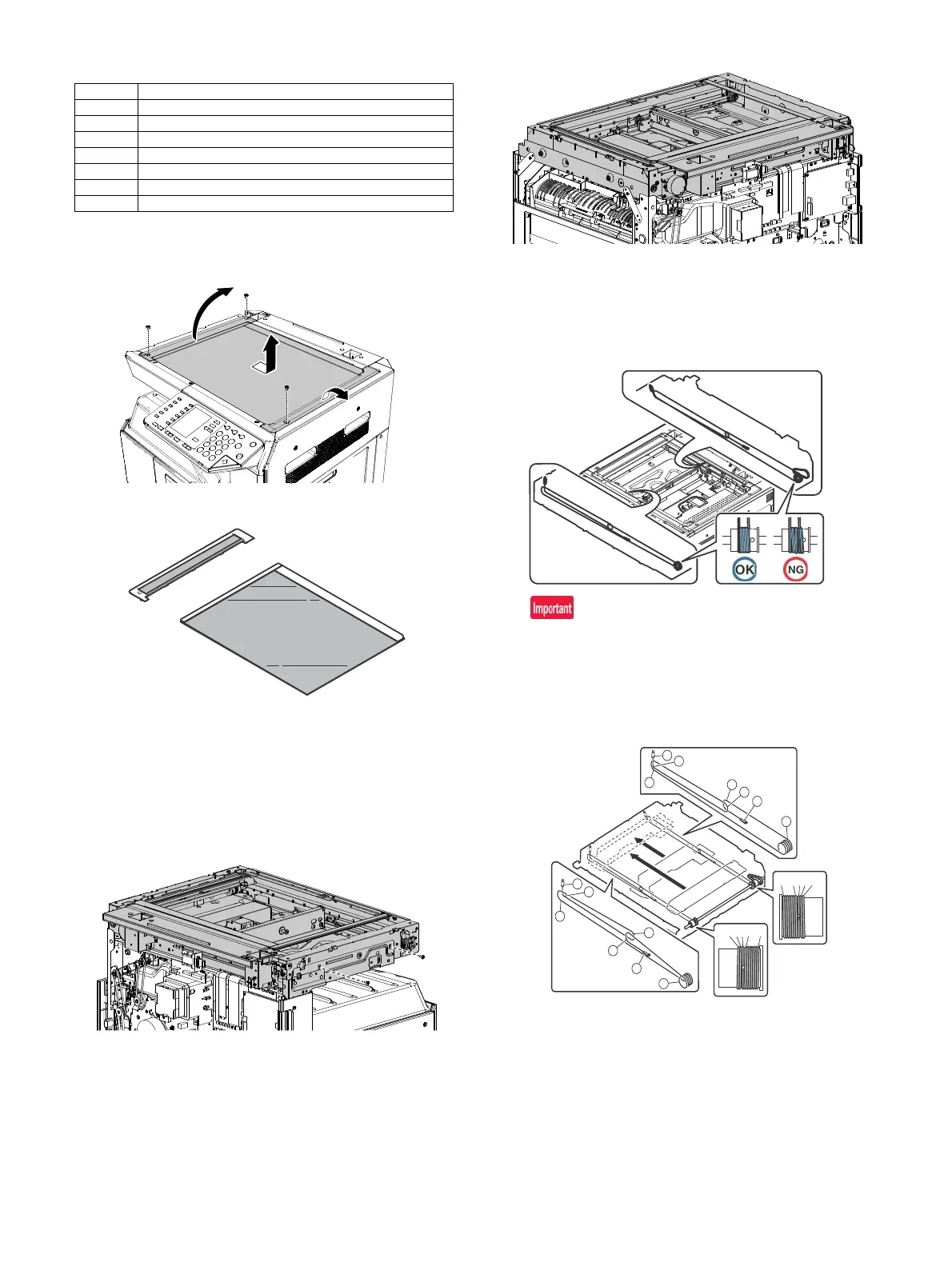 1) Remove the glass holder. and the table glass. Remove the