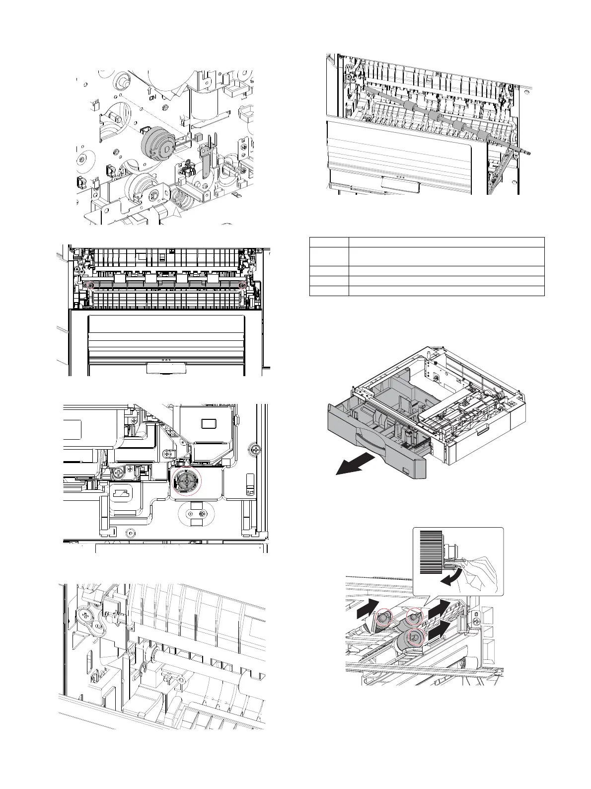 2) Remove the tray pick up roller, the tray paper feed roller and
