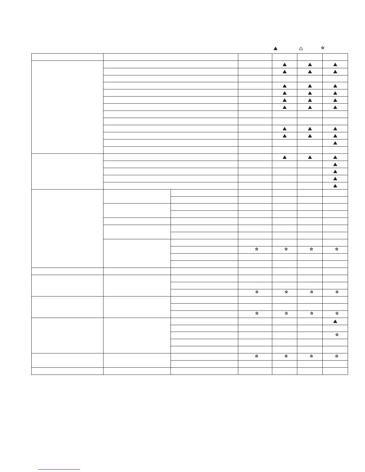 X:Check(Clean, adjust, or replace when required.) O:Clean :Replace :Adjust :Lubricate