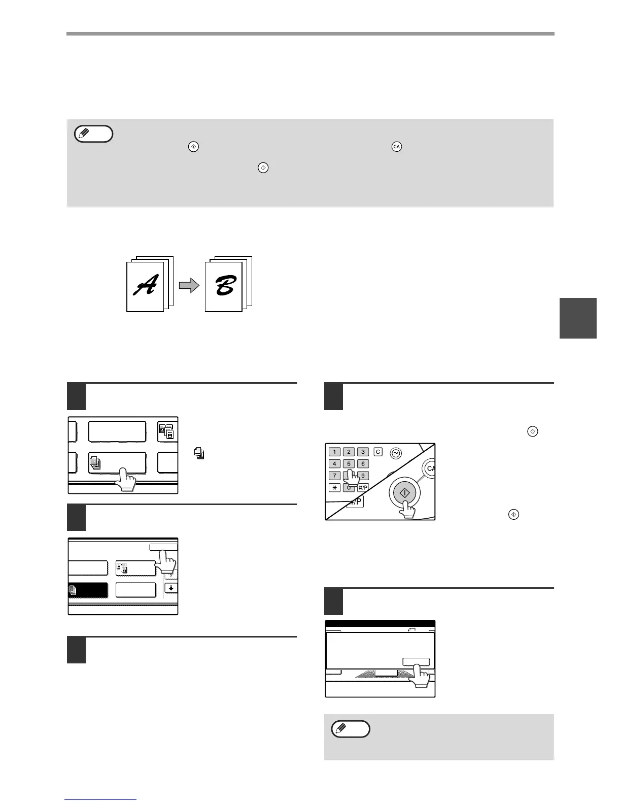 Use this function when you need to copy more originals than can be placed in the RSPF at once. (The maximum