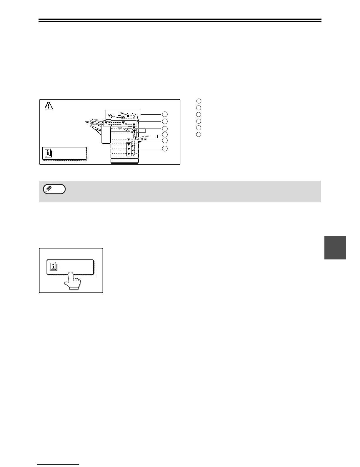 Misfeed removal guidance can be displayed by touching the [INFORMATION] key on the touch panel after a