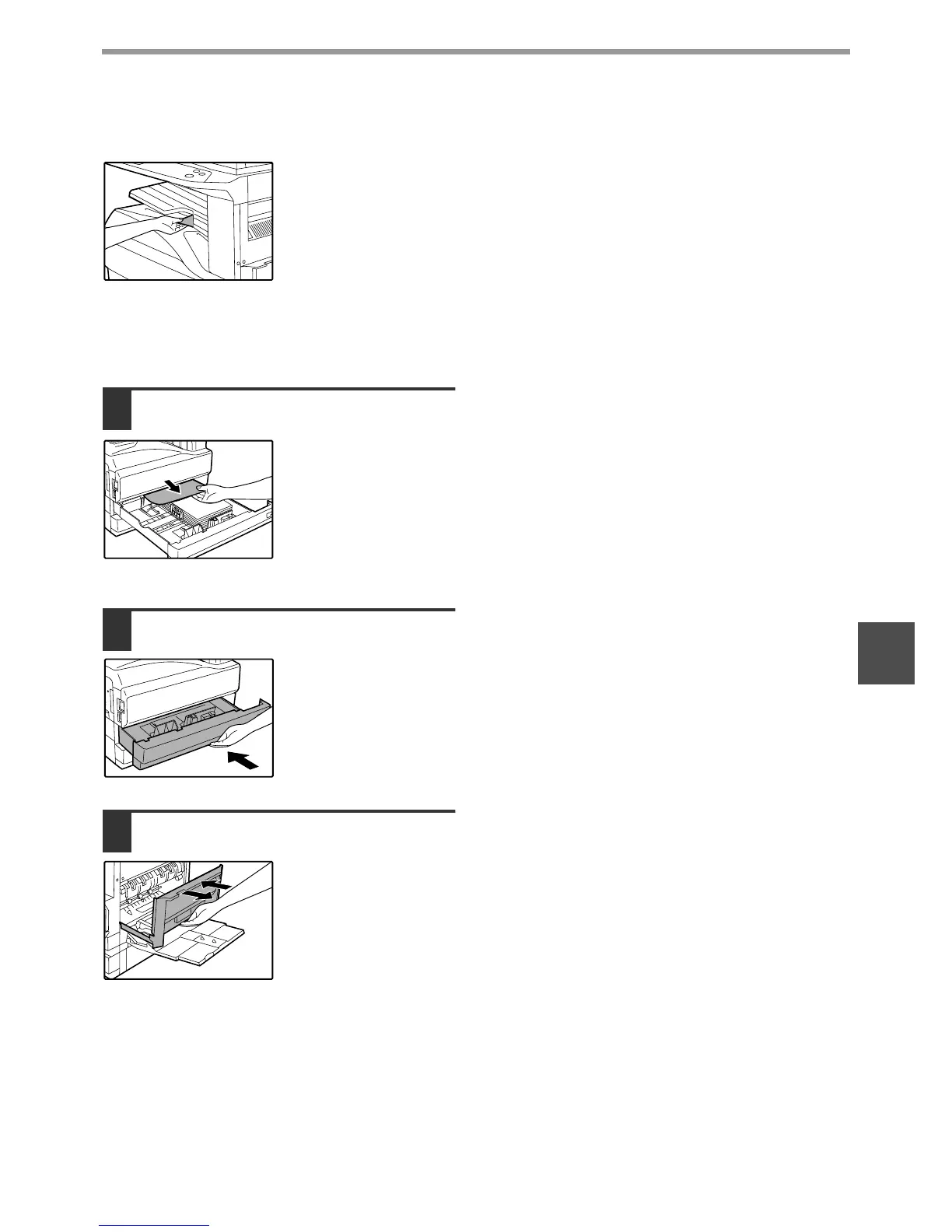 Make sure that there is no misfed paper in the machine before pulling the tray out. (p.65)