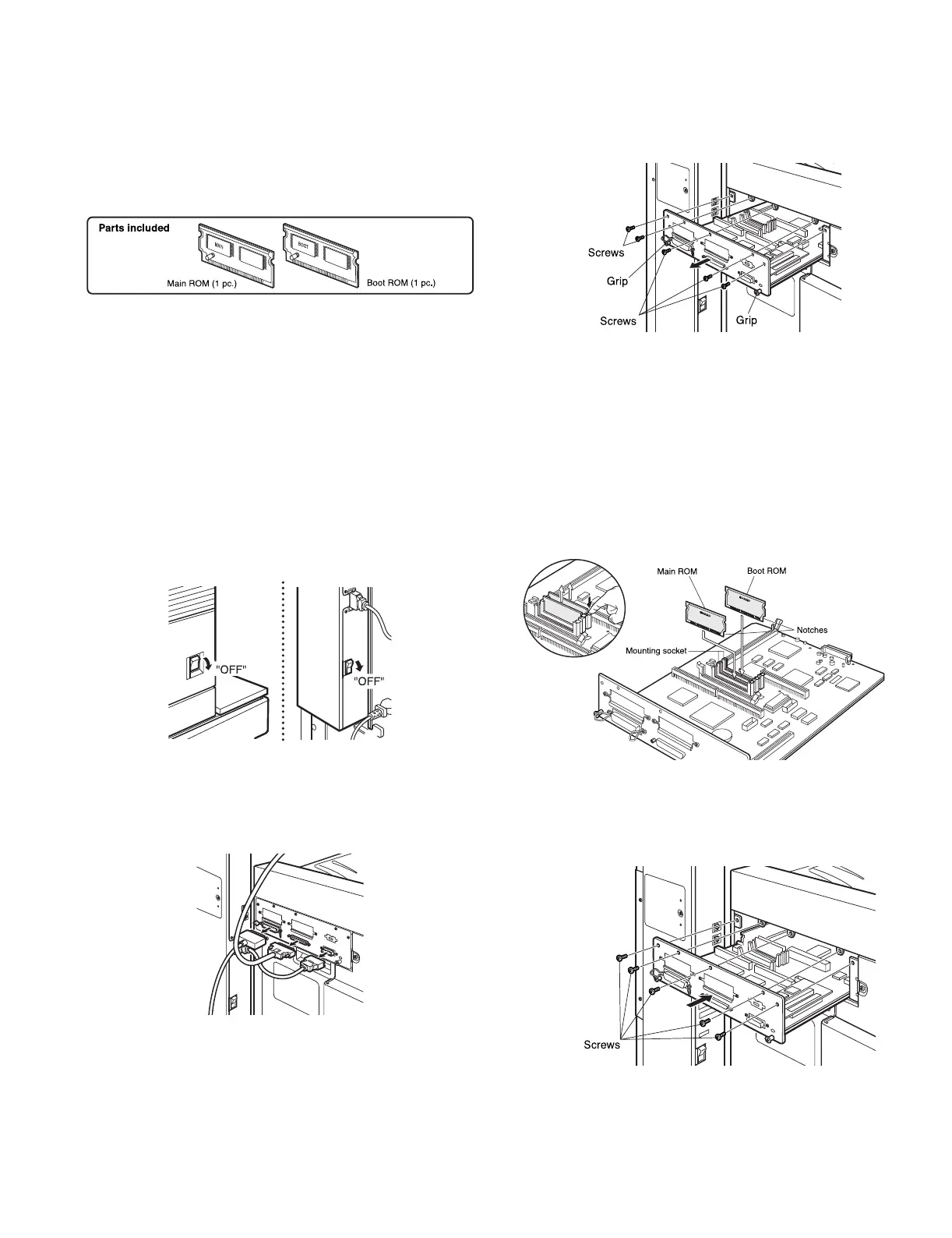 <4>Mount the printer expansion kit ROMs(2 pcs.)to the control PWB.