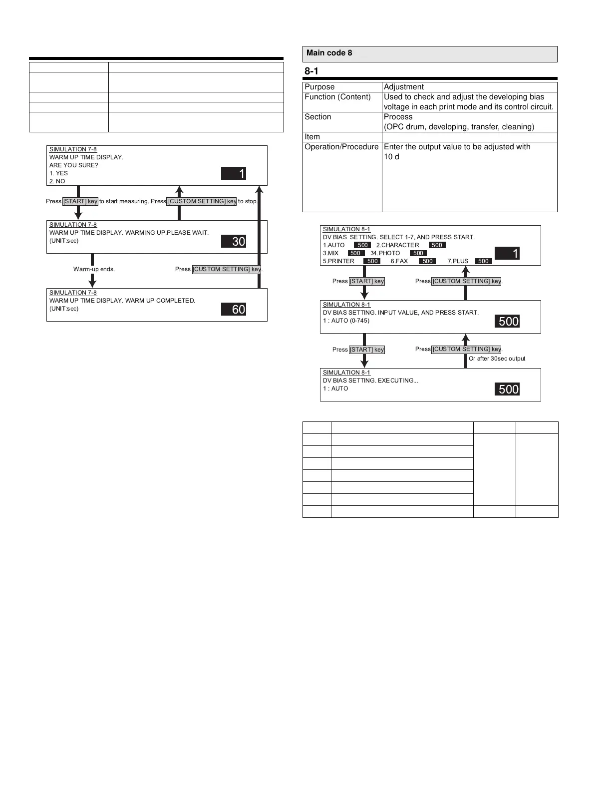 7 Reverse developing bias voltage 150 0 ~255